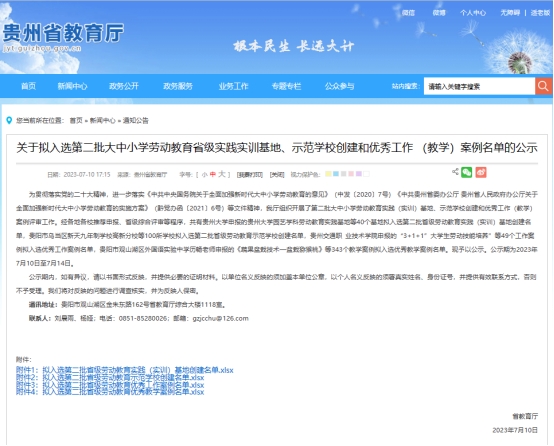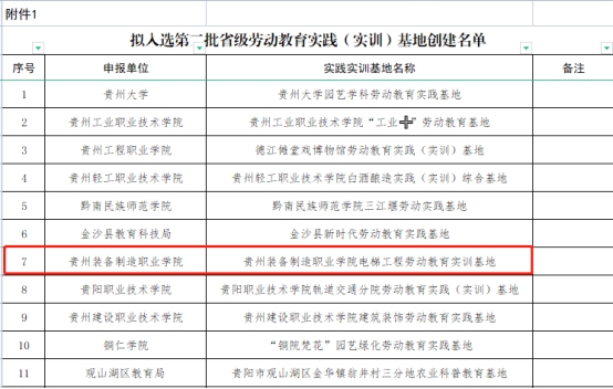 近日,在贵州省教育厅组织开展的第二批大中小学劳动教育实践(实训)基地、示范学校创建和优秀工作(教学)案例评审中,beat365官网选送的《英国beat365官方网站电梯工程劳动教育实训基地》和《好"焊"材,不止是"锡"引-蓝牙音响电子产品制作劳动实践课程教学案例》《“忠诚工匠”之校园装饰实践教育》成功入选省级实践实训基地和劳动教育优秀工作(教学)案例。