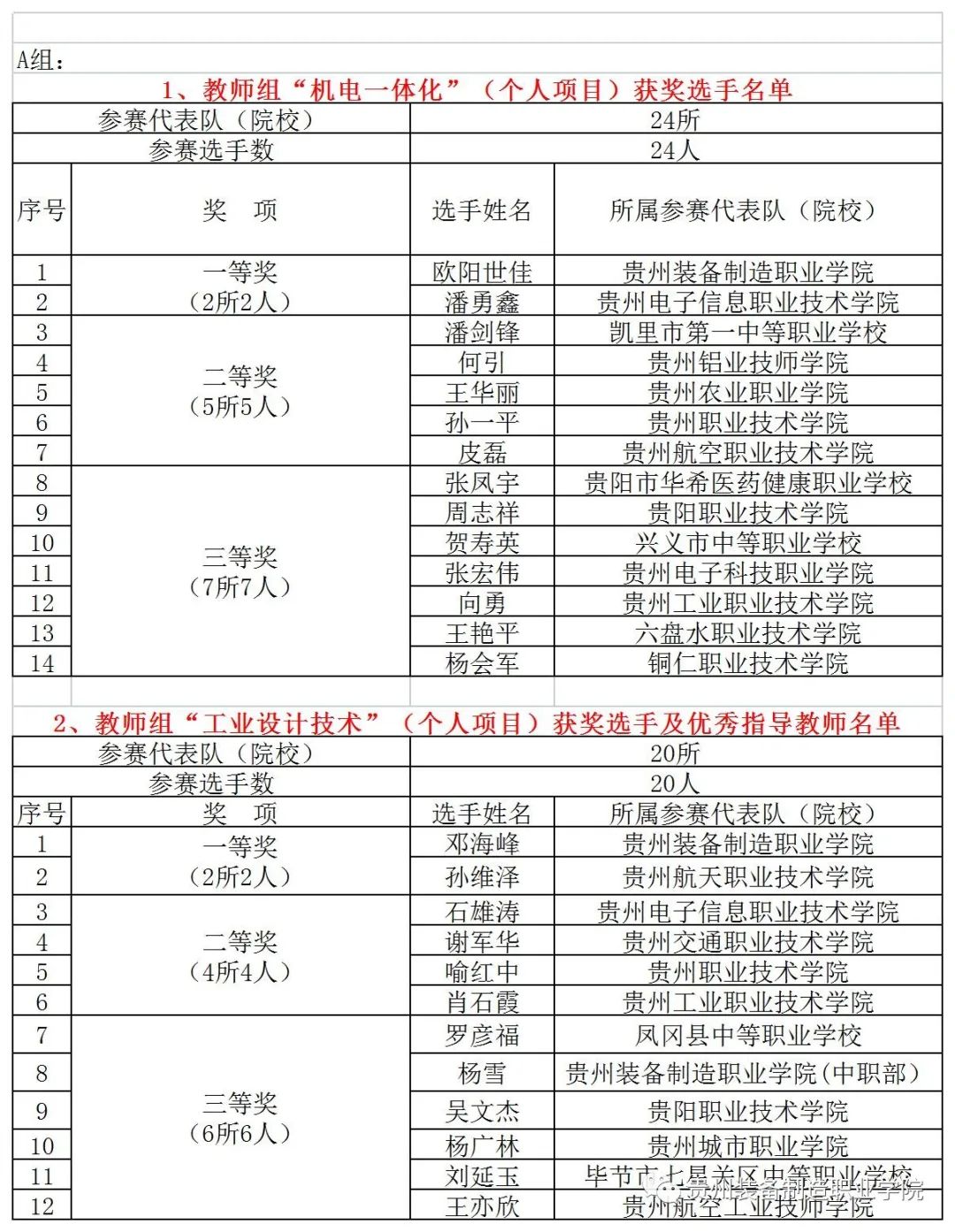 获奖名单