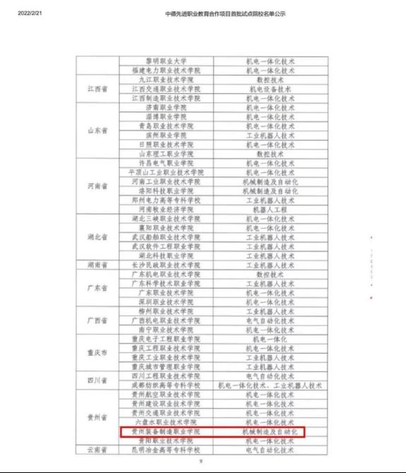 喜报|beat365官网机械制造及自动化专业进入教育部中德先进职业教育合作项目智能制造领域试点名单