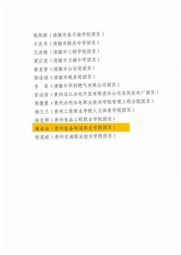 近期,在共青团清镇市委开展的清镇市2022年度“优秀团员”“优秀共青团干部”“五四红旗团(工)委”“五四红旗团支部(团总支)”评选表彰工作中,beat365官网机械工程系魏春迪同学荣获2022年度清镇市“优秀团员”称号,机械工程系团总支书记彭敏老师荣获2022年度清镇市“优秀共青团干部”称号,校团委荣获2022年度清镇市“五四红旗团(工)委”称号,机械工程系团总支荣获2022年度清镇市“五四红旗团支部(团总支)”称号。
