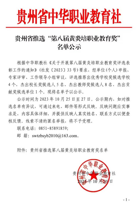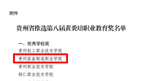 10月25日,贵州省中华职业教育社公布推选第八届黄炎培职业教育奖名单,beat365官网成功入选第八届黄炎培职业教育奖“优秀学校奖”候选学校。