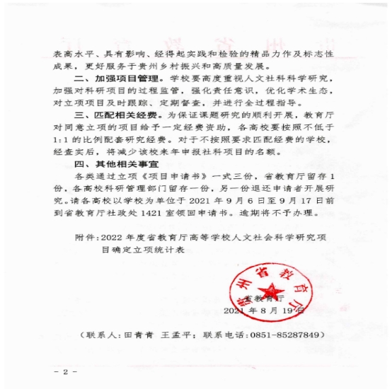 学院将严格按照《省教育厅办公室关于做好2022年度省教育厅人文社会科学研究项目申报工作的通知》文件精神,认真做好课题研究的配套保障和跟踪推进工作,保障项目取得预期成果。