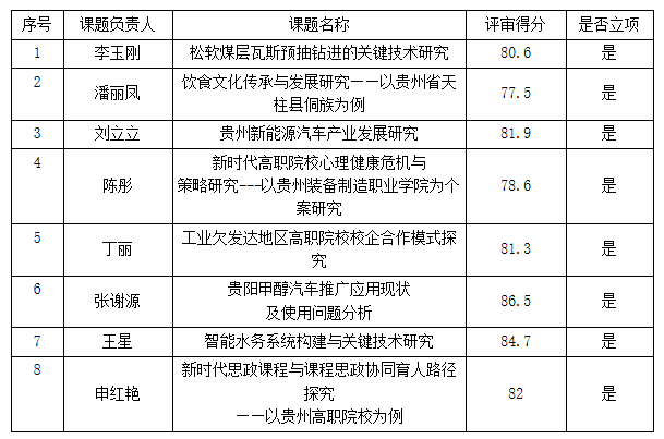 2020年12月4日科研处组织了本年度科研评审会议。会议对2020年院级科研课题立项、准研究生团队建设结项和“双十”课题结题进行了评审。评审结果经院长办公会审议通过后决定对8项课题予以立项(详见表1),4个准研究生团队予以结项(详见表2);15个双十课题予以结题(详见表3)。