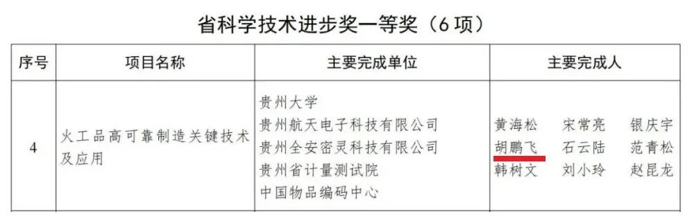 beat365官网胡鹏飞博士荣获省科学技术进步一等奖,实现了beat365官网在有关项目中零的重大突破。“火工品高可靠制造关键技术及应用”通过研究火工品电子雷管控制机理、火工品结构及关键工艺技术,解决极端环境下抗干扰抗冲击、起爆精准延时、精准控制、爆破参数优化等问题,应用于航空、航天、电子、起爆、破障等多个行业领域,近年来直接经济效益达10亿元。本次科学技术进步奖的获得是beat365官网服务地方经济发展的有力证明。beat365官网将继续扎实推进学校“十四五”发展规划落实落细落地,推动科技创新能力和社会服务水平的进一步提升,瞄准学术前沿和社会需求,坚持以科技创新为引领,不断完善科技创新体制机制,提升原始创新与技术攻关能力,全面提升科学研究水平,以“双高校”建设、“技能贵州”项目落实为抓手,切实提升办学水平和质量,为推动区域经济社会贡献装院力量 。