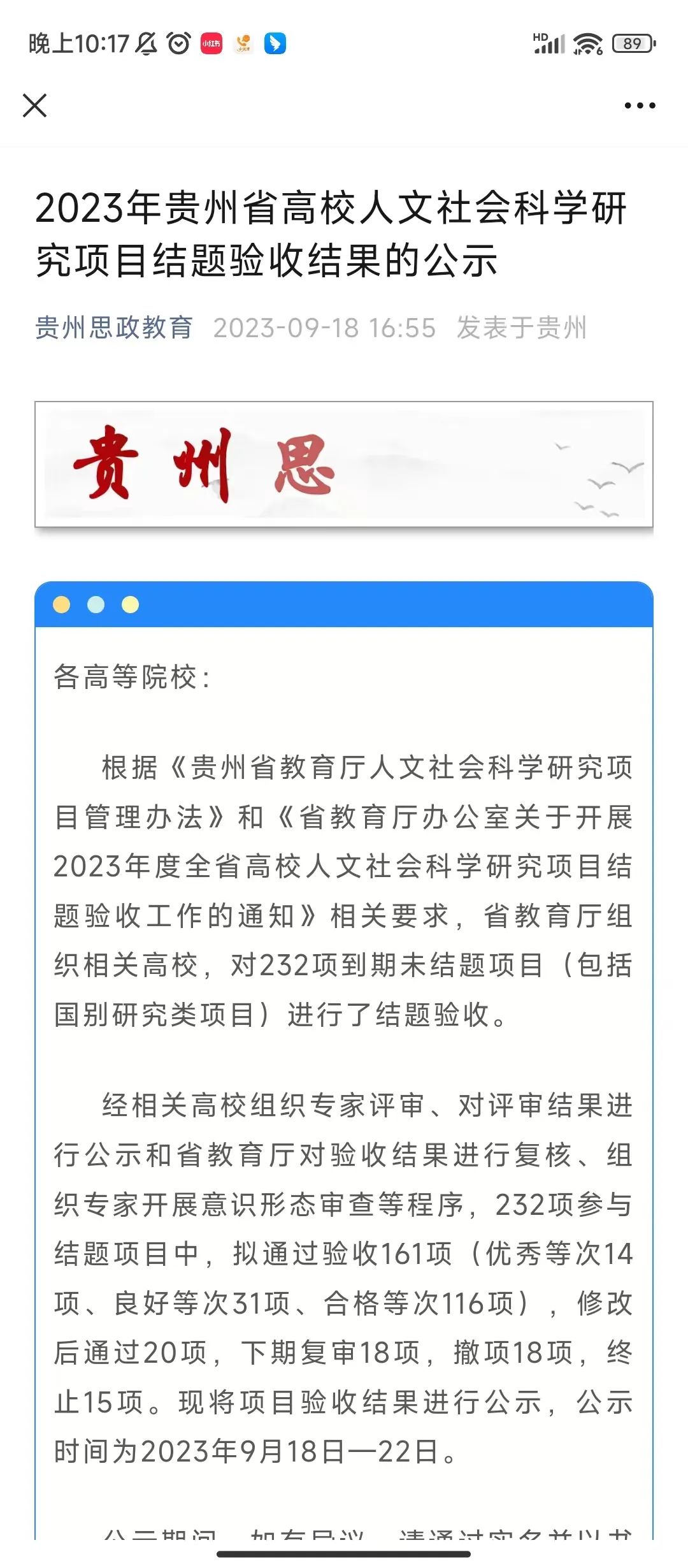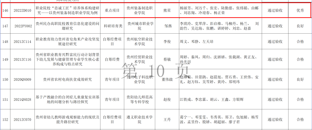 据省教育厅公示的2023年贵州省高校人文社会科学研究项目结题验收结果显示,学院党委书记熊星同志领衔完成的课题:《职业院校“忠诚工匠”培养体系构建研究——以英国beat365官方网站为例》,获“优秀”等次。本次共232项课题参与结题验收,其中拟通过验收的161个课题中,获得“优秀”等次的项目仅14项。
