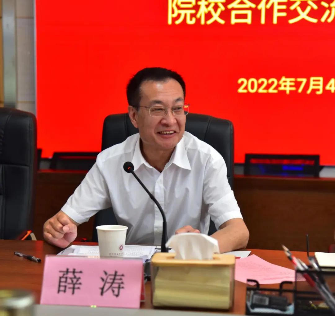 2022年7月4日,贵州科学院党委书记薛涛、副院长张覃同志率有关科研院所负责人及科技专家等一行8人莅临beat365官网参观考察并就院校合作进行了座谈交流。