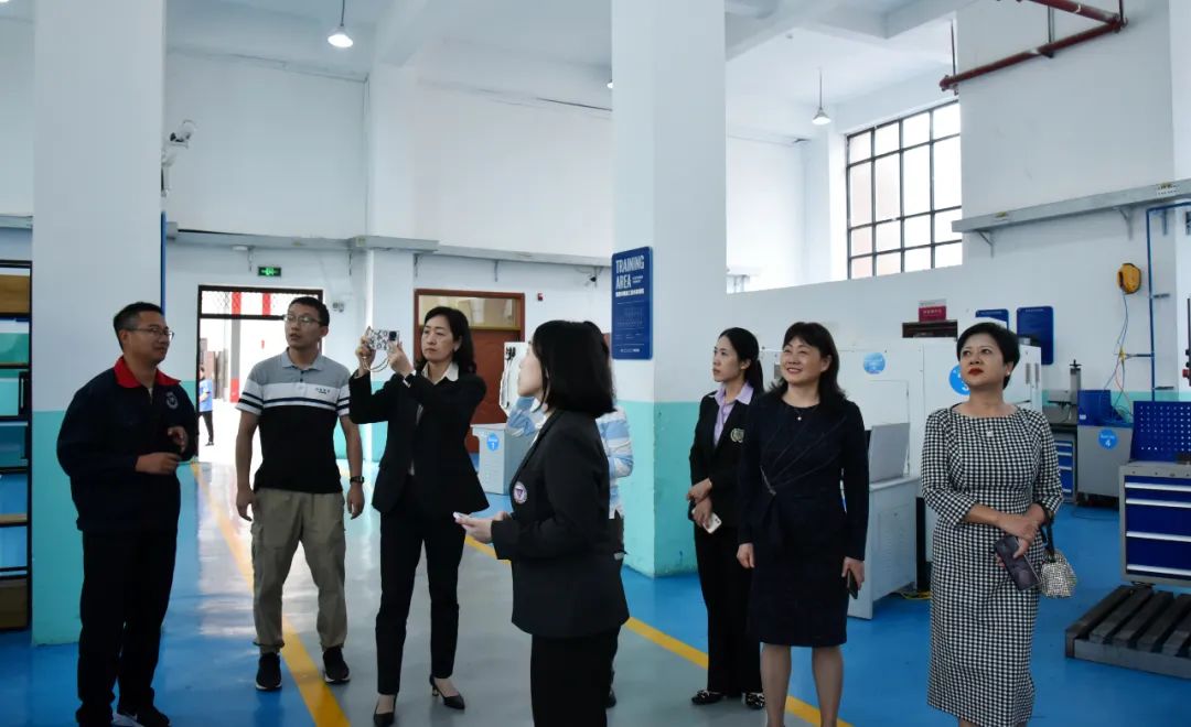 副校长帕塔玛·鲁苏万纳坤一行先后参观了学校贵州省教育系统“牢记嘱托•感恩奋进”理想信念教育基地、国家级数控实训中心、“数字双胞胎”产线、贵州省科普基地汽车科普馆、国家级汽车实训基地等场所,了解学校办学和改革发展情况,参观途中频频拍照点赞,给予充分肯定。