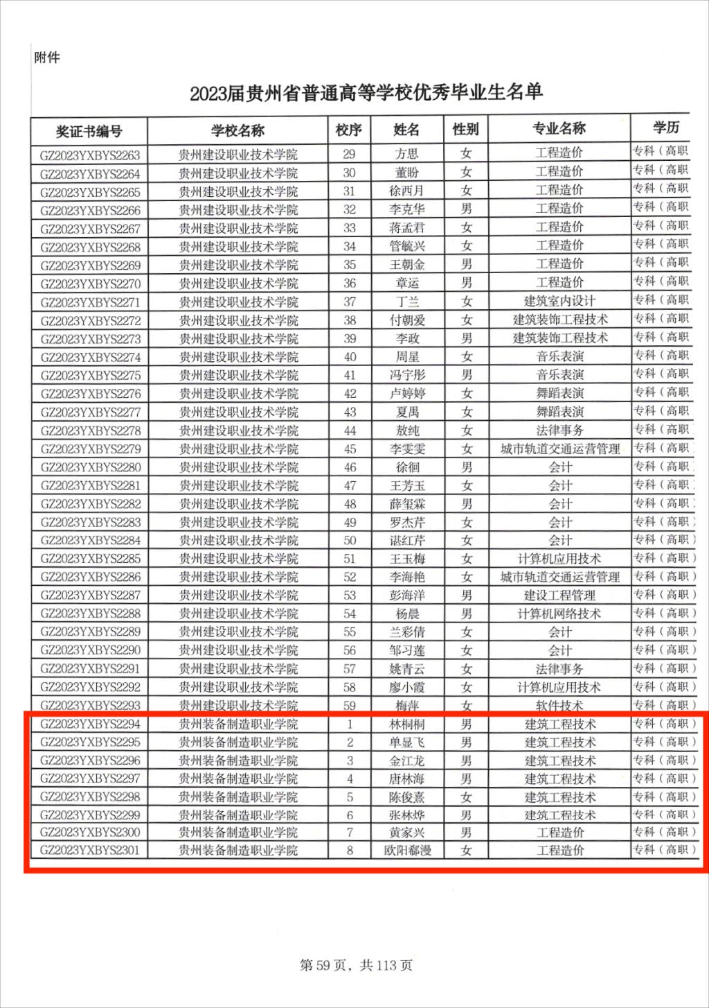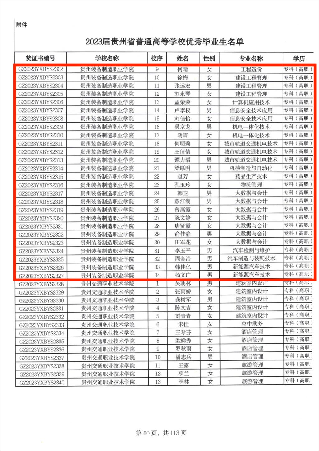据省教育厅关于2023届贵州省普通高等学校优秀毕业生评选结果的通报,全省共有4371名学生获得2023届贵州省普通高等学校优秀毕业生通报表扬,beat365官网有34名同学获此殊荣(名单如下)。