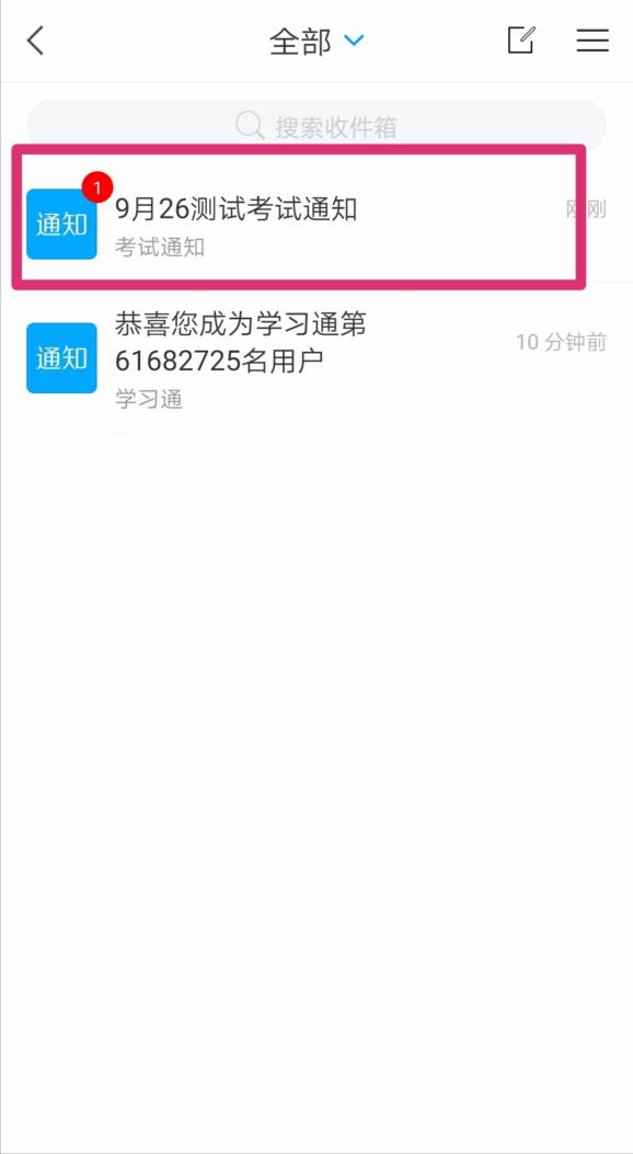 收件箱里找到学校考试发布的考试通知,点击查看进入通知页面。