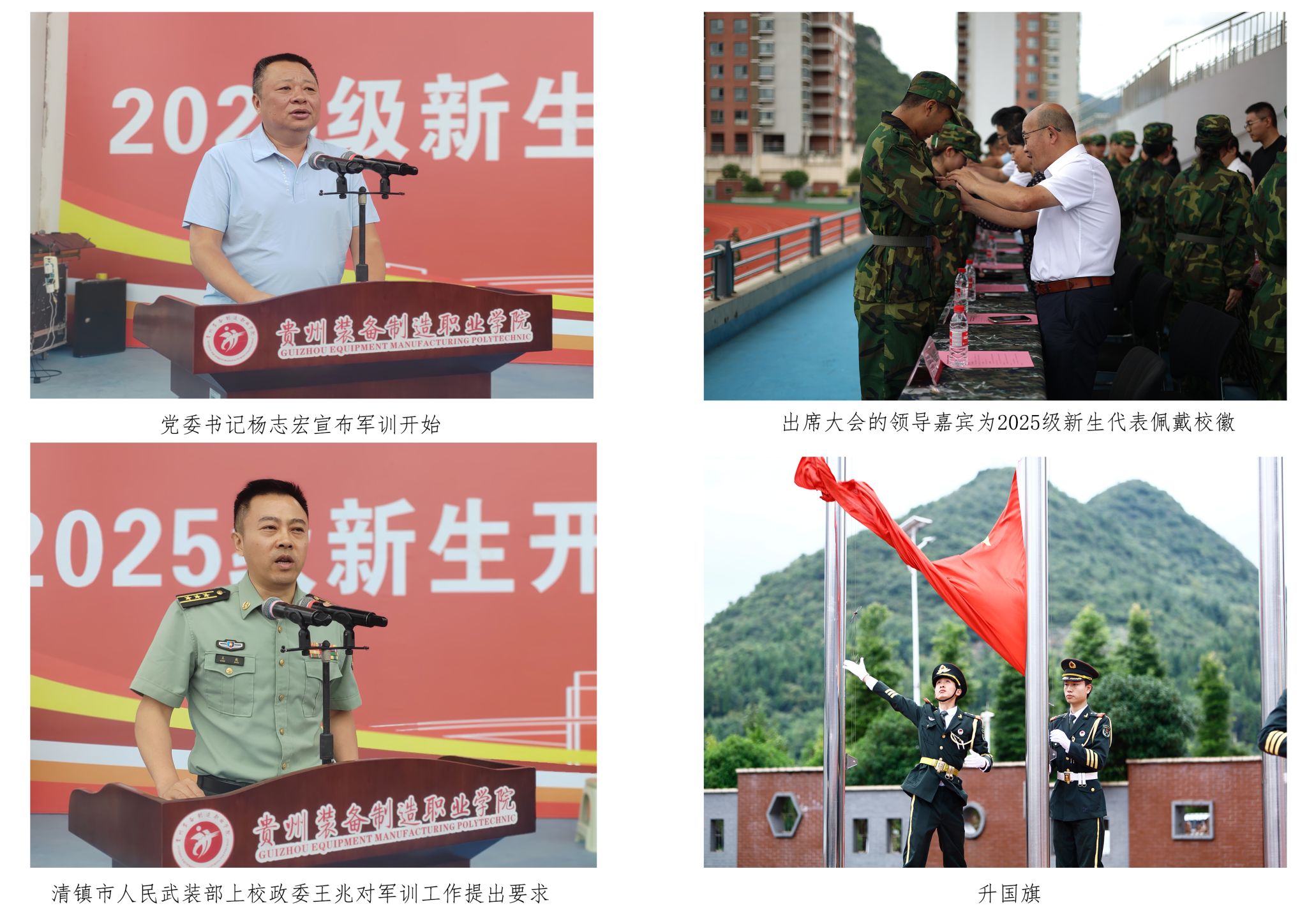 承训单位清镇市人民武装部上校政委王兆对军训工作提出要求:一是要求同学们要向教官学习、学习军事技能和优良的军队作风,严守纪律、勇于吃苦、团结互助,完成好本次军训课程;二是要求承训的教官要严格按照规定科学训练,将伟大抗战精神融入训练课程,以身作则,将人民军队“听党指挥、能打胜仗、作风优良”优秀品质贯穿军训全过程。