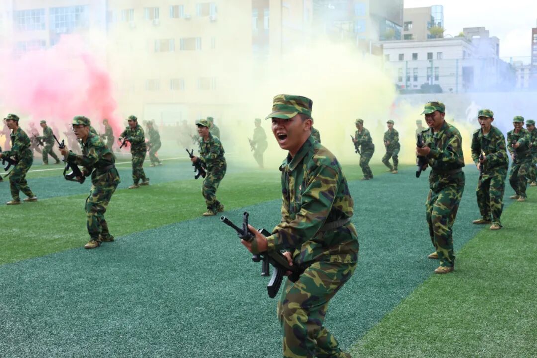 杨书记指出,今年正值中国人民抗日战争暨世界反法西斯战争胜利80周年,本次为期15天的军训是一堂熔铸钢铁意志、锻造精神韧性的成长课,更是一堂培养家国情怀、赓续红色血脉的必修课;全体参训学子以汗水浇灌成长,用坚持铸就品格,既强健了体魄,又淬炼了精神,是同学们未来人生道路上的宝贵财富。