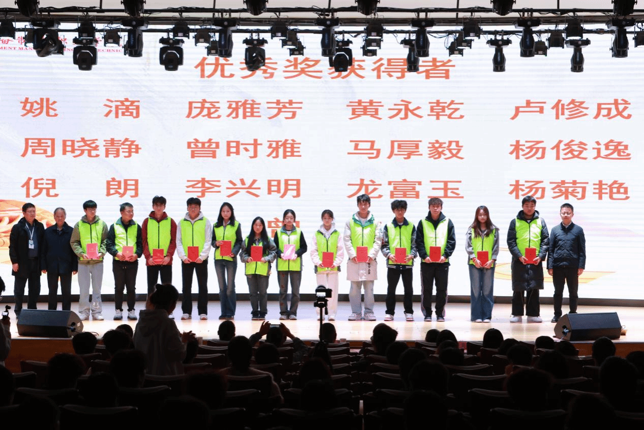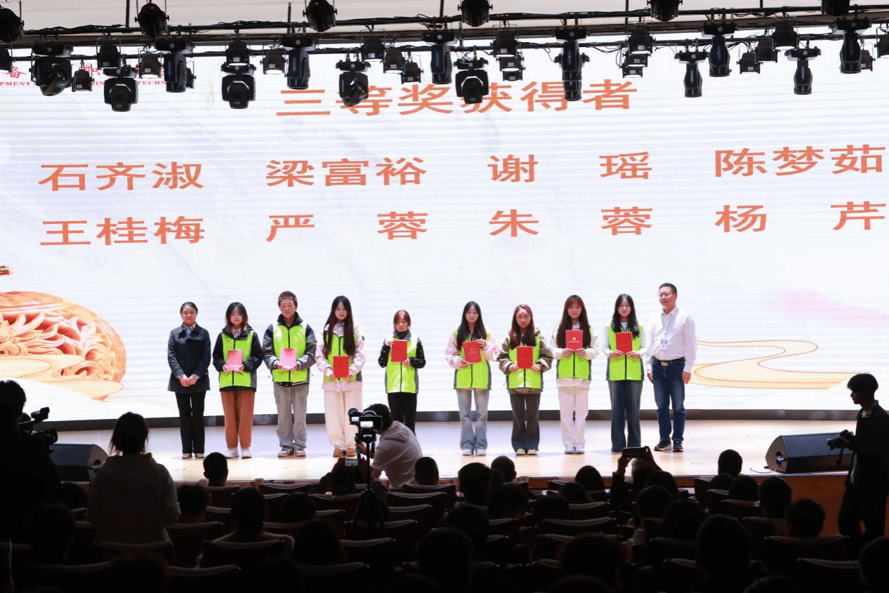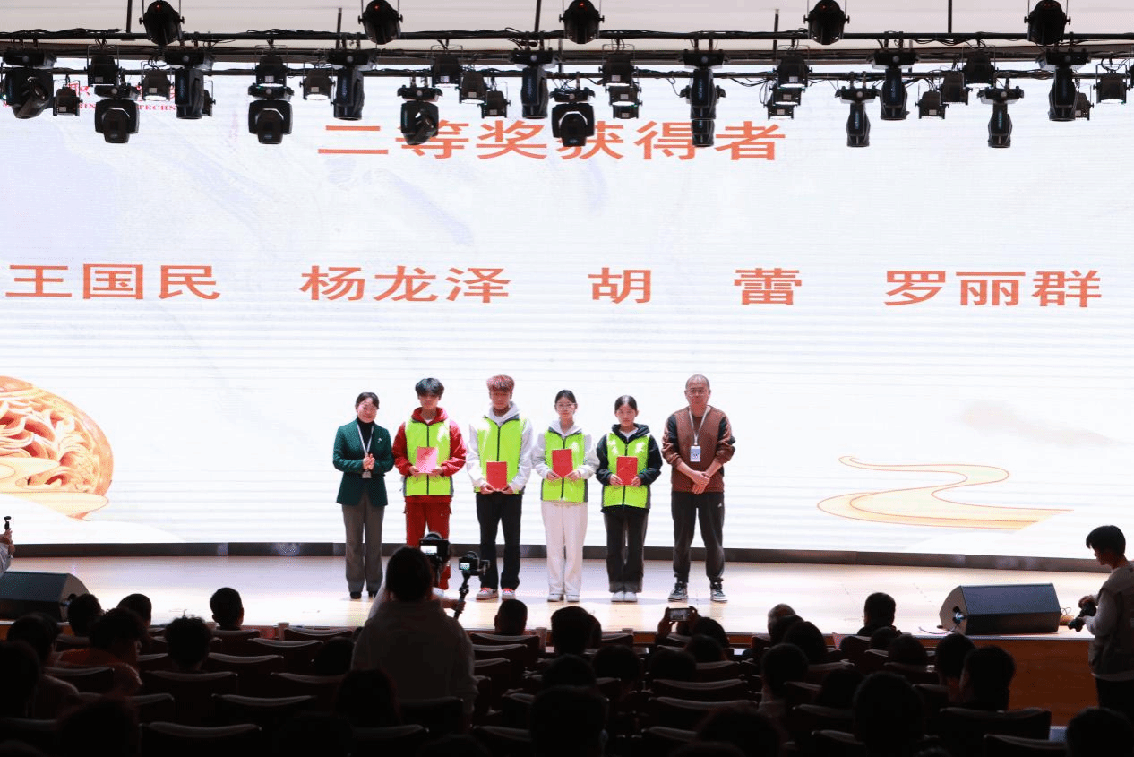 贵州省瓜灯非遗传承人黄国林,电气工程系党总支书记、主任刘忠翔,共青团清镇市委副书记高磊为荣获优秀奖参赛选手颁奖
