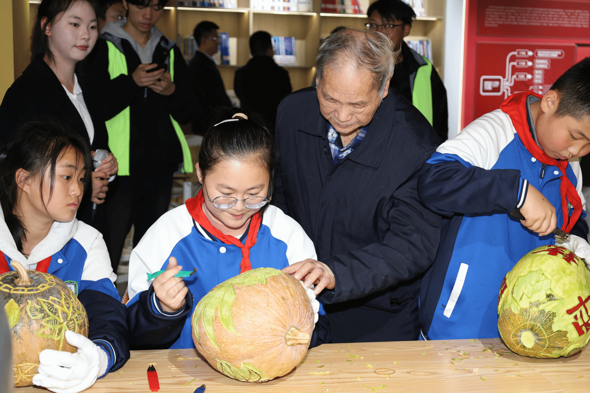 活动期间,校外领导嘉宾一行先后参观了忠诚工匠文化研究院、黔瓜灯艺非遗传承工作室,清镇市第二实验小学学生在现场教师指导下,体验瓜灯雕刻的非遗技艺,通过“大手拉小手”的校地联动,进一步落实大中小学协同育人机制。