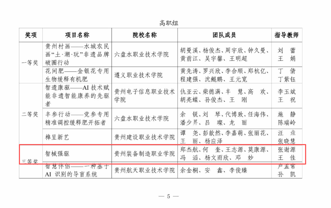 学院中专部“诊脉序行——新能源汽车电网稳定护航者”项目获中职组二等奖,并晋级国赛总决赛,项目团队指导教师田正洪、李长艺洋获优秀指导教师。学院“智械强驱——基于动能回收与人机协同的自适应仿生外骨骼机器人”获高职组三等奖。