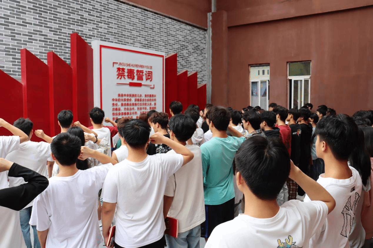 学员们在学校禁毒教育科普馆前进行禁毒宣誓