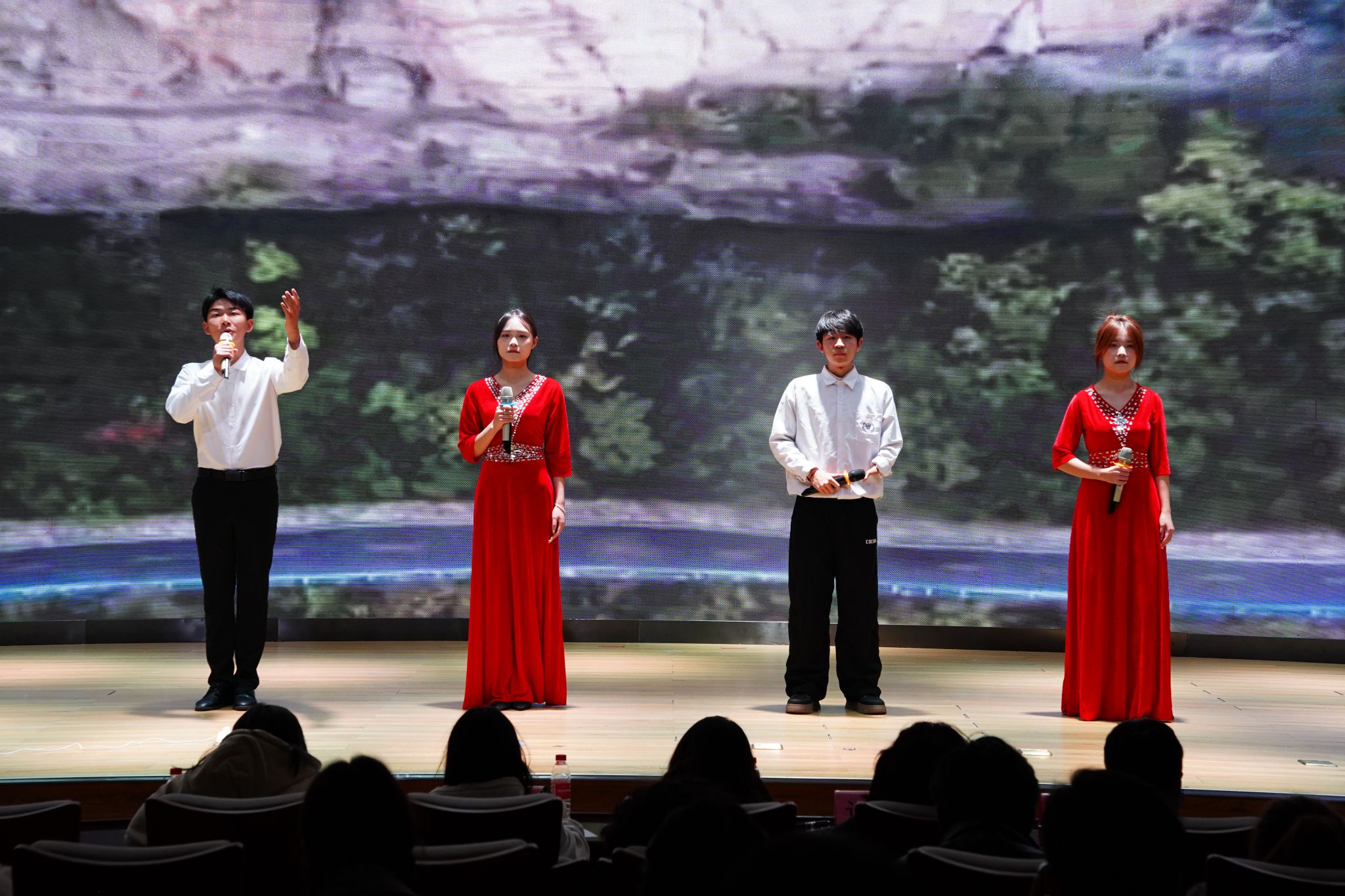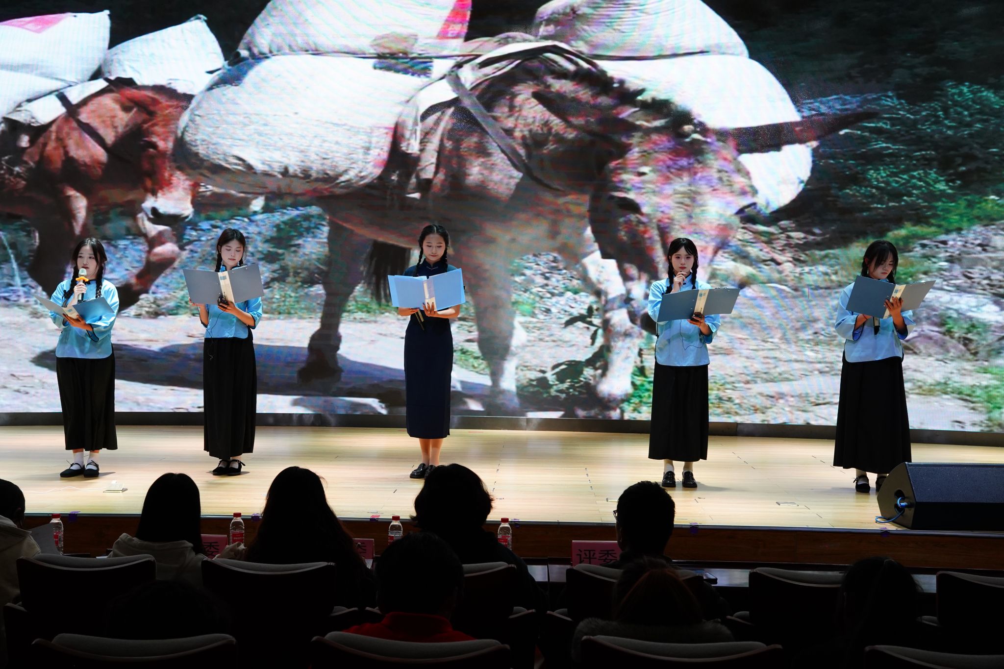经过各系部初赛选拔,最终,个人组13名选手与集体组14支队伍晋级决赛。决赛现场,选手们或豪情满怀吟诵《水调歌头·明月几时有》《满江红》,重现古人的豪放不羁与精忠爱国,或慷慨激昂深情演绎《月光下的中国》《红旗渠》《大写的中国》重温峥嵘岁月和倾诉家国情怀,以声音为媒,以情感为墨,让一段段文字穿越时空,直抵人心,赢得了现场观众的阵阵掌声。
