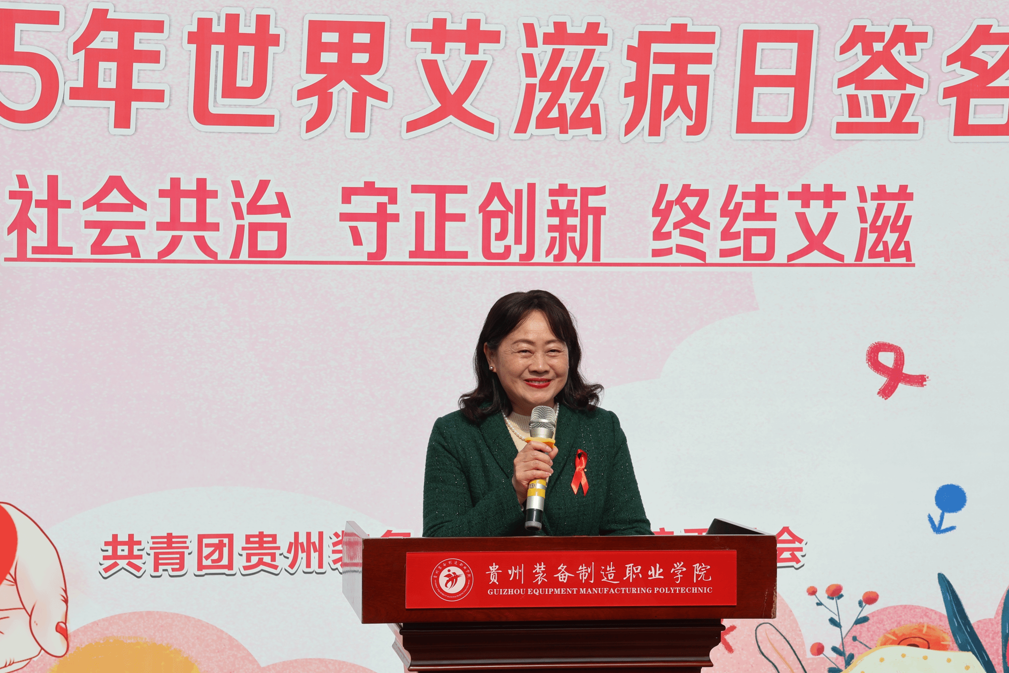 随后,学生代表张勇进行了发言。他号召全体同学主动了解艾滋病的传播途径和预防方法,坚决抵制高危行为,用健康守护青春,用青年学生喜欢的方式让严肃的防艾知识“活”起来,用每一次正确的选择、每一次善意的讲解、每一次负责的行动,共同实现终结艾滋的伟大目标。
