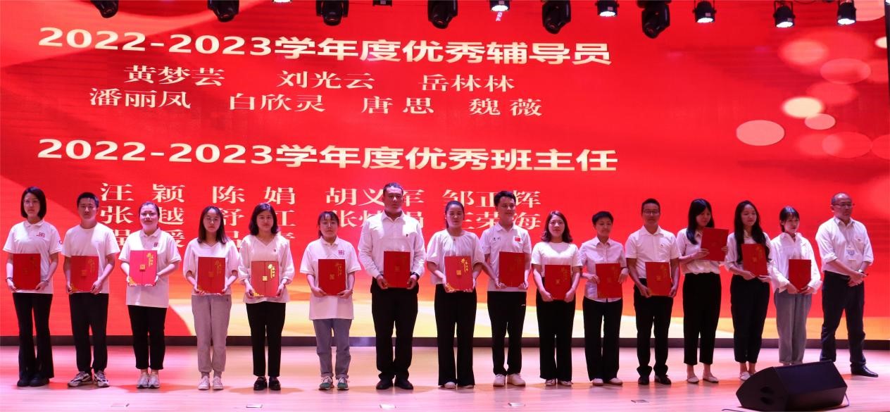 在表彰环节,党委副书记杨丽芳同志宣读了《英国beat365官方网站关于表彰2022-2023学年度优秀教师、教育工作先进个人、优秀辅导员、优秀班主任的决定》《英国beat365官方网站关于表彰2022年度“两优一先”和“身边榜样”的决定》;团委副书记孙文同志宣读了30年教龄教师名单、2022年目标绩效考核“突出贡献奖”名单、大思政课工作“突出贡献奖”名单,大会对学院131名教师进行现场表彰,与会领导为获得表彰的教师颁发优秀证书。