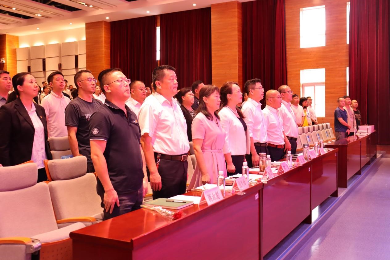 伴随着庄严的旋律,全体教师齐声高唱《中华人民共和国国歌》。