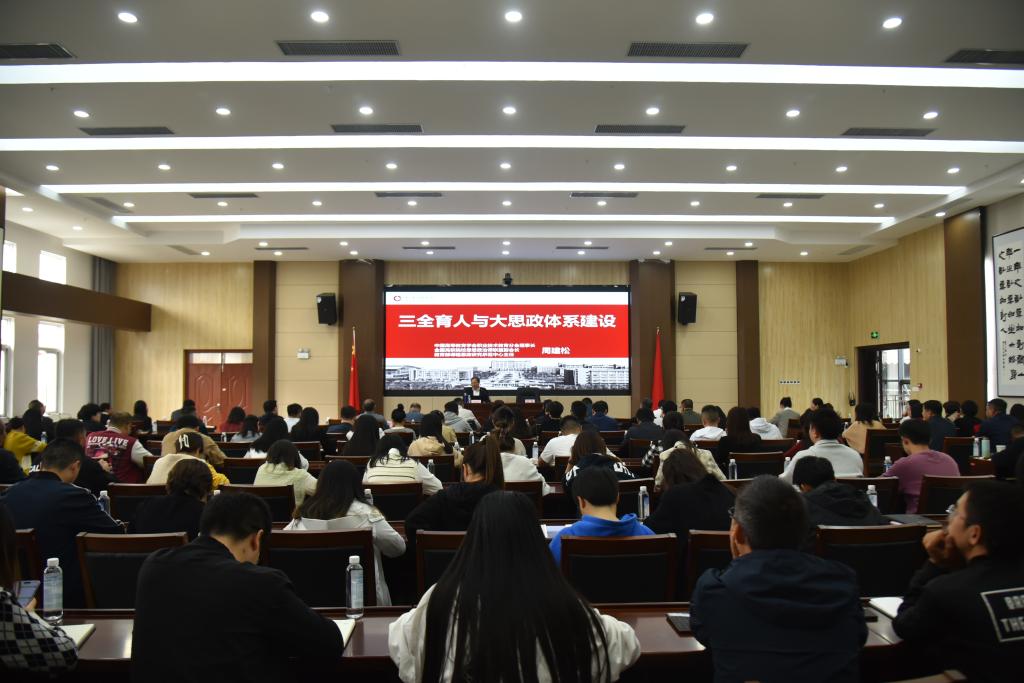 为进一步贯彻落实全国职教大会精神和全省高等教育高质量发展大会的精神,全力推进学校“三全育人”和“大思政体系”建设工作,10月19日上午,受beat365官网的邀请,教育部思政类政策制定的咨询专家,浙江金融职业学院原党委书记周建松到校开展题为“三全育人与大思政课体系建设”专题讲座。校党委书记熊星同志主持会议,党委班子成员、中层干部、思政课教师、班主任、辅导员等200余人参加。