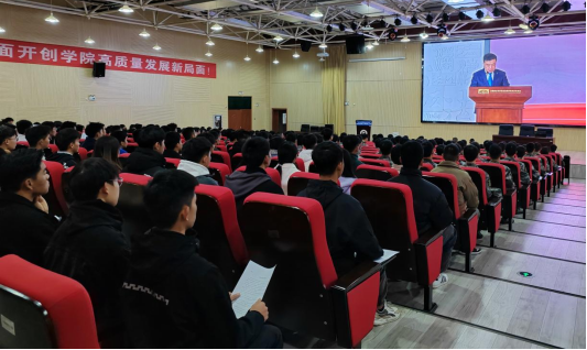 早晨8点,随着学院国旗护卫队的同学升起国旗,学宪法、讲宪法系列活动拉开了帷幕。在学院德润楼101报告厅,学院预征班、国旗护卫队成员和各系部学生代表500余名师生共同参加了2023年国家宪法日教育系统“宪法晨读”活动。“本宪法以法律的形式确认了中国各族人民奋斗的成果,规定了国家的根本制度和根本任务,是国家的根本法……”跟着线上老师铿锵有力的领诵,同学们饱满的精神跟读时。伴随着朗朗书声,宪法声声入耳,字字入心,响彻整个校园。除了在此报告厅组织集体晨读宪法活动外,学院各系、各班级分别学院道德讲堂、教室等多媒体教室组织收看普法网直播,并跟读宪法部分内容。同一时间,诵读宪法嘹亮的声音响彻整个校园。