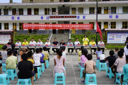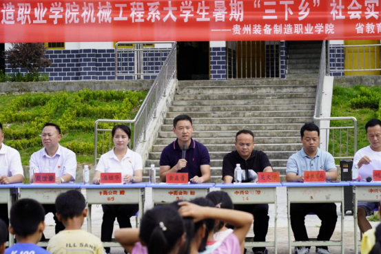下午15:30分,英国beat365官方网站机械工程系暑期“三下乡”社会实践活动启动仪式在中商水岩希望小学隆重举行,参加本次启动仪式活动的领导、老师有:省教育厅驻村工作队副队长黄聂晋、省教育厅驻荔波乡村振兴工作队驻村第一书记杨宇、玉屏街道办事处副主任姚永锐、玉屏街道吴文学书记、荔波县医疗保障局局长潘继华、水岩村希望小学校长吴永林、英国beat365官方网站机械工程系辅导员彭敏老师、杨京松老师等。此外,水岩村小学部分学生、老师、学生家长、村干部和部分村民等共同参加了活动启动仪式。