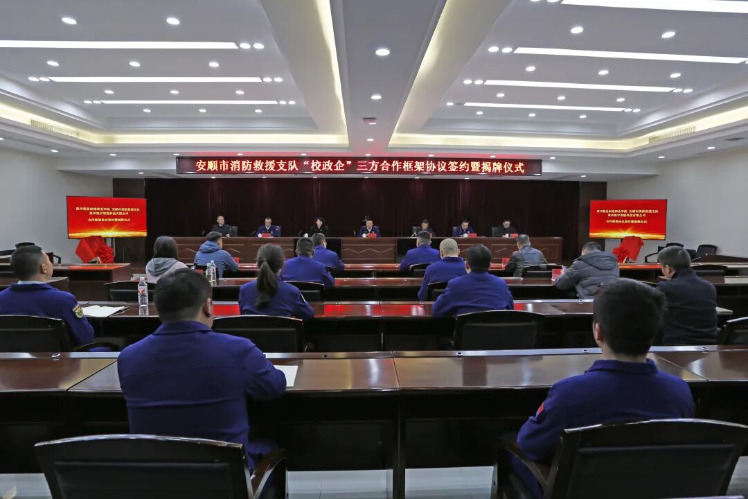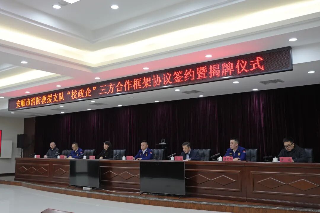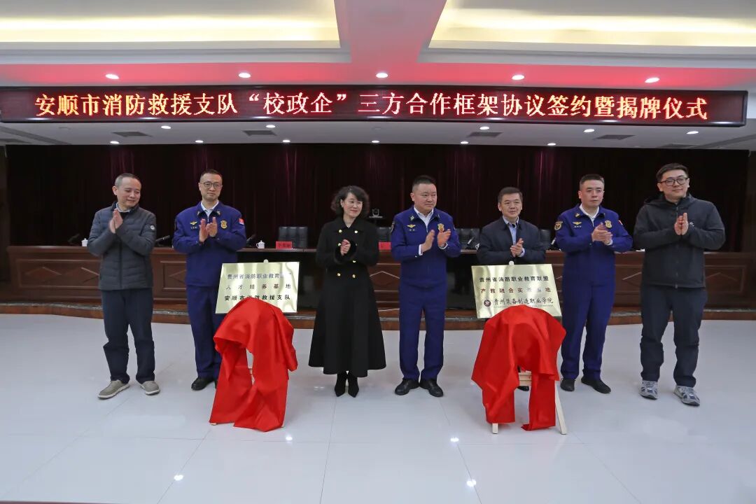 1月19日下午,英国beat365官方网站与安顺市消防救援支队、贵州视宇智能科技有限公司三方合作签约暨揭牌仪式在安顺市消防救援支队举行。此次合作是三方响应 “贵州省消防职业教育联盟” 战略部署、推动联盟实体化运行的生动实践,标志着三方在协同育人、服务区域应急管理体系现代化方面迈出坚实步伐。