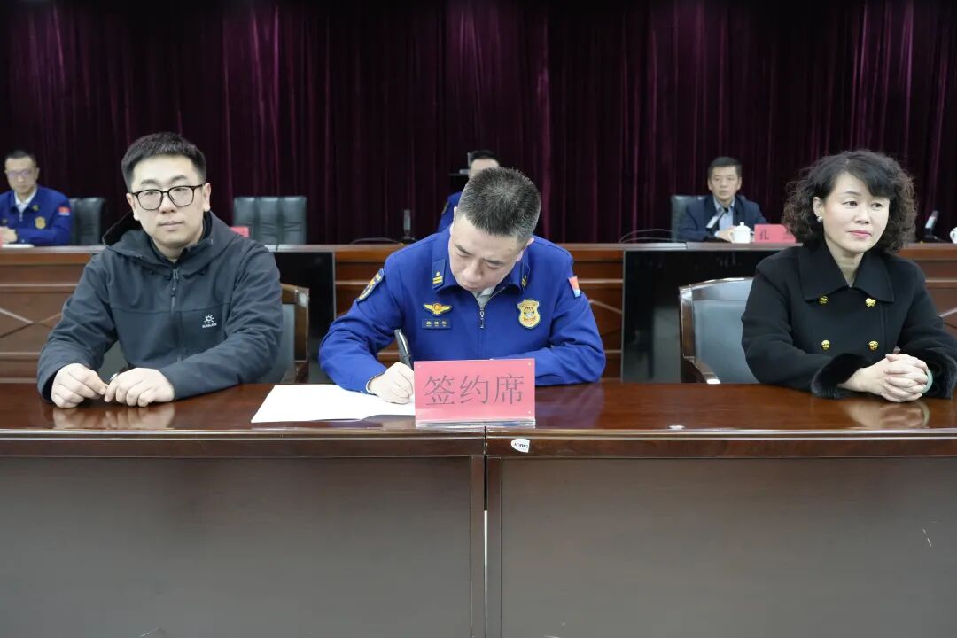 在与会嘉宾见证下,三方代表签署合作框架协议,完成校外导师聘任与实训基地揭牌。此次合作秉持 “资源共享、优势互补、协同创新、共赢发展” 原则,聚焦四大重点方向:一是共建人才培养体系,通过实训基地共建、师资互聘、人员互训等,开展智能装备操作、应急处突等专项培训与认证,打造 “双师型” 队伍并储备专业人才;二是联合攻关智能消防装备,针对特殊复杂环境救援难题,研发智能灭火机器人、消防无人机专用载荷等新型装备,建立 “需求 — 研发 — 测试 — 应用” 快速转化通道;三是打造实训研发平台,共建 “低空 + 平安职教城” 无人机实训平台、“低空 + 消防” 空地一体化平台及 “产教研学用” 创新实验室,形成区域性综合服务平台;四是共担社会责任,开展消防安全宣传 “五进”、区域性应急演练,为地方企业提供消防装备检测与技术升级服务,提升社会抗御火灾能力。