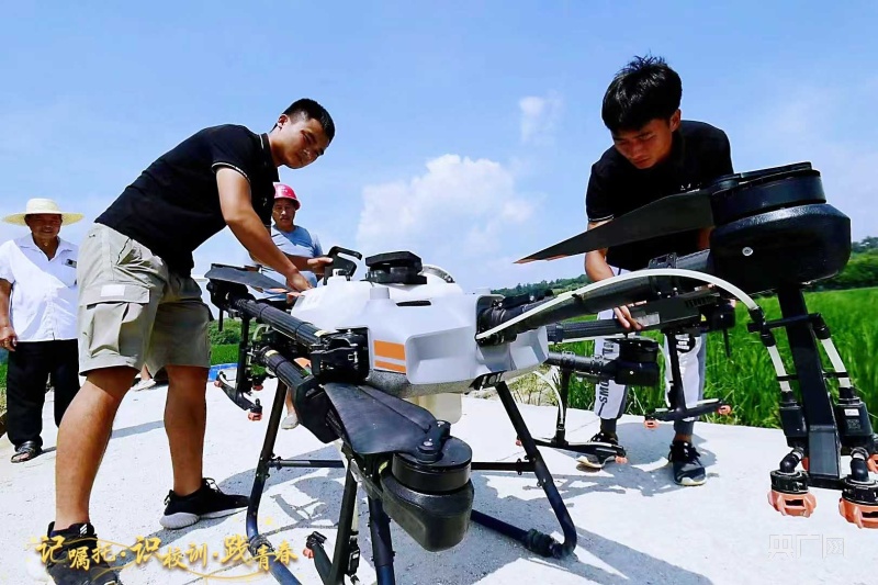 随着规模越来越大,吴天成开始培训当地未就业的年轻人,组建了十余名飞手的无人机植保飞防团队,将数字技术运用到田间地头,让家乡的农业生产更加绿色高效。