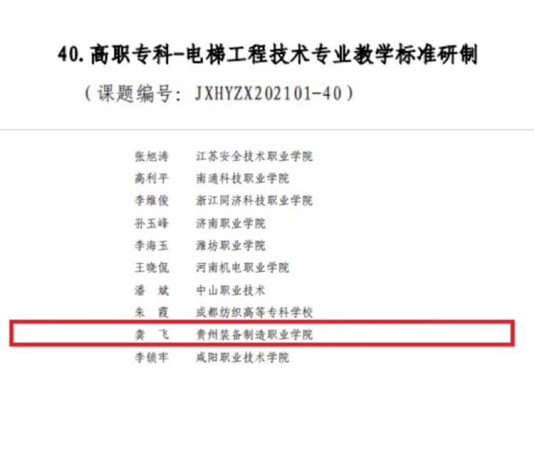 七、高职专科-电梯工程技术专业教学标准研制(课题编号:JXHYZx202101-40)
