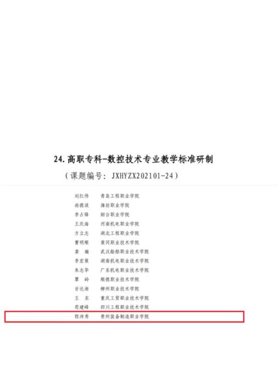 四、高职专科一数控技术专业教学标准研制(课题编号:JXHYZx202101-24)