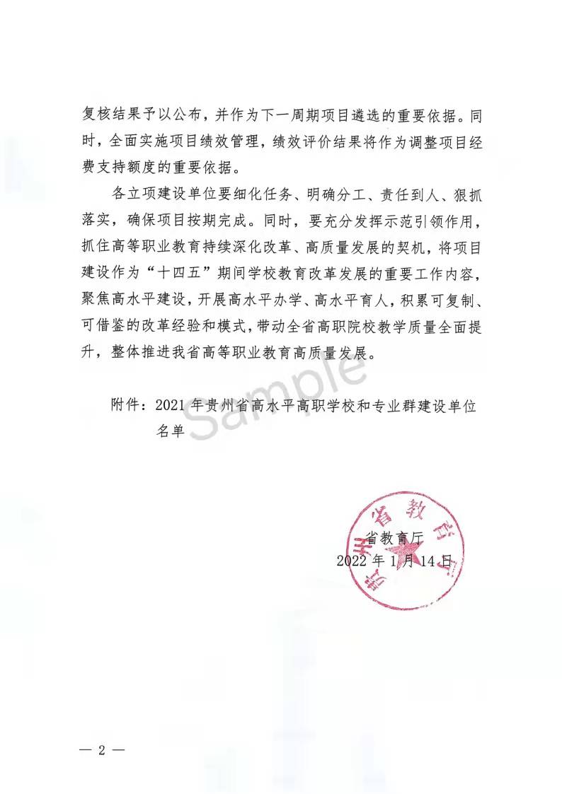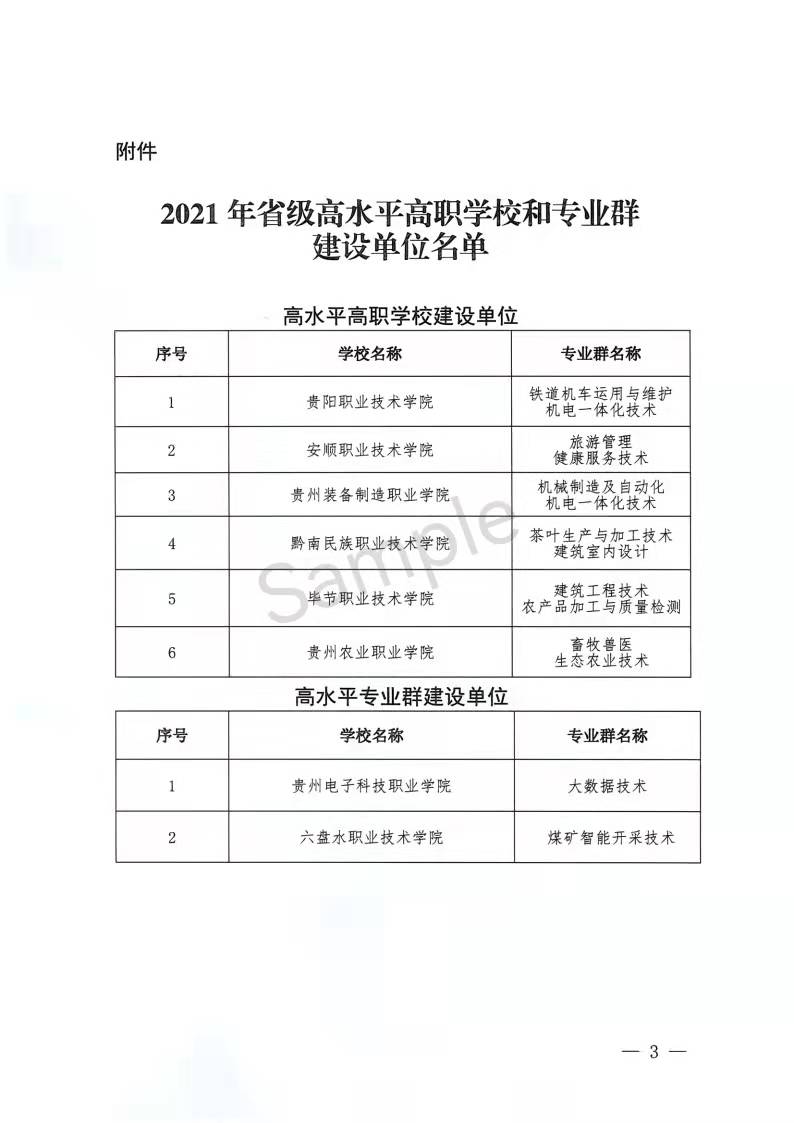 2022年1月14日,贵州省教育厅公布2021年贵州省高水平高职学校和专业群建设单位名单,通过项目申报、网络材料评审和现场集中评审等环节,共有8所单位成功入选,其中高水平高职学校建设单位6个,高水平专业群建设单位2个,beat365官网成功入选省级高水平高职学校建设计划,机械制造及自动化机电一体化技术专业群成功入选省级高水平专业群建设计划。